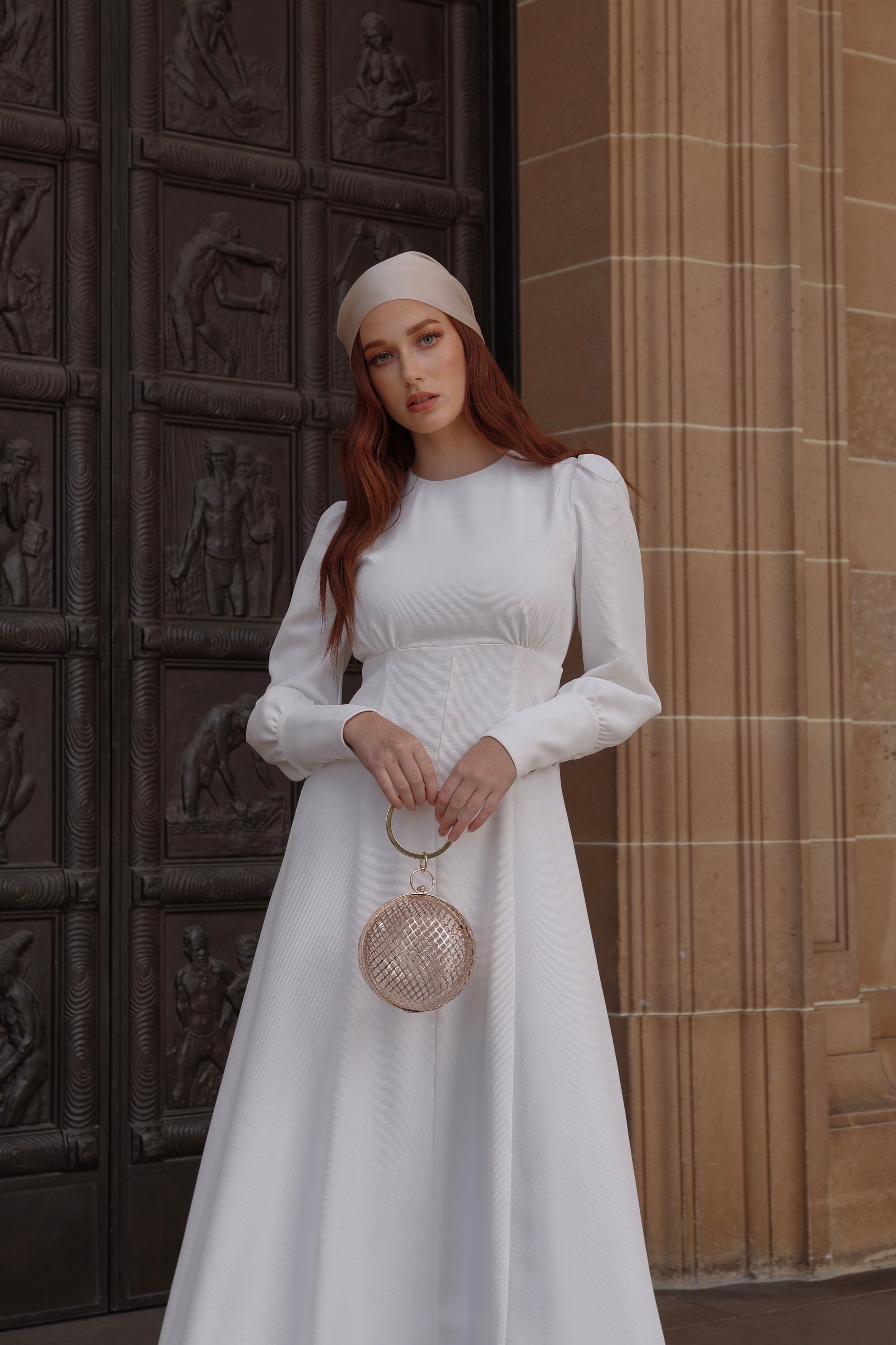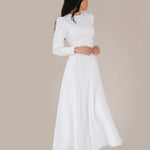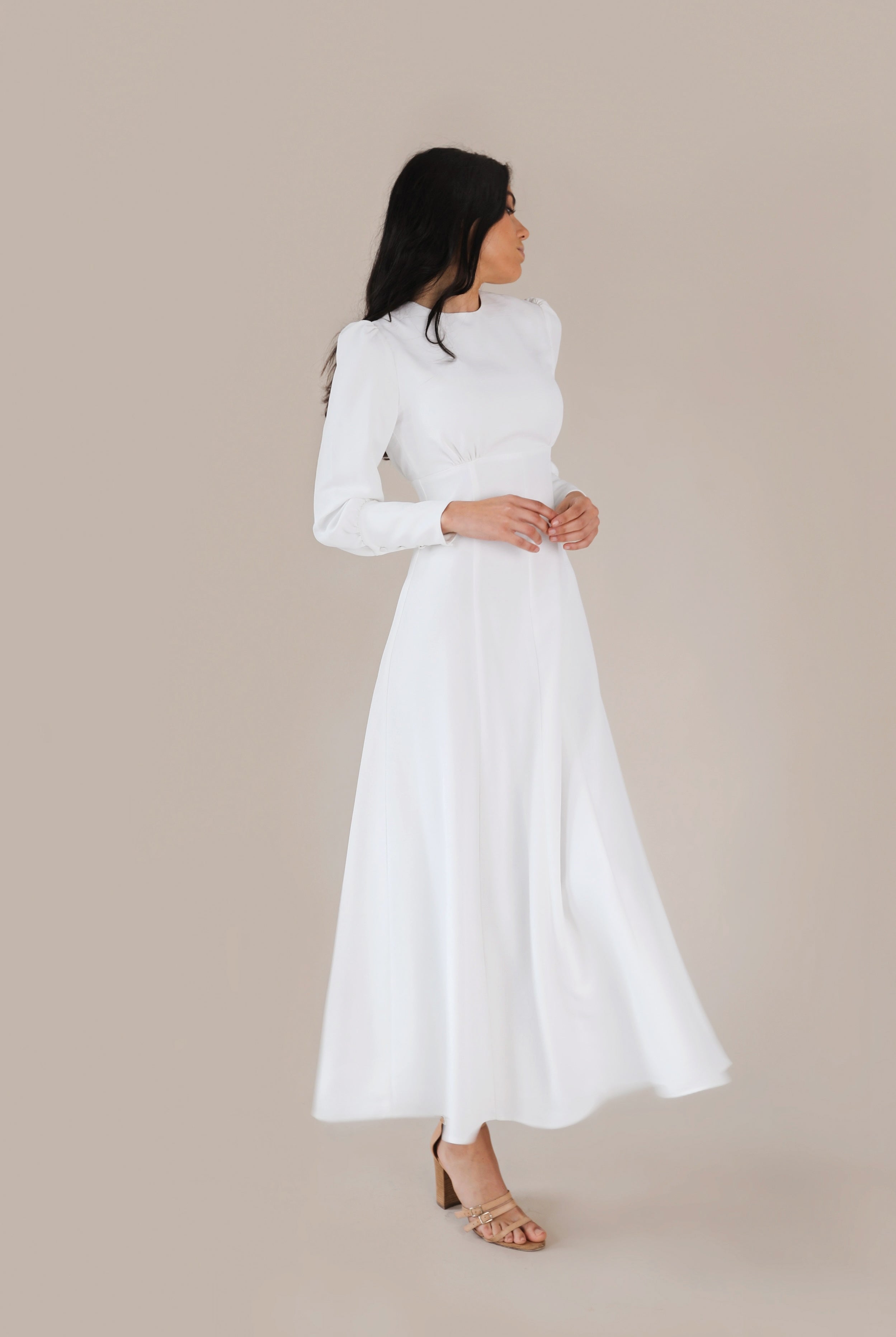 The dress also features a 52cm invisible zipper, double turned hem that sits right above the ankle. This dress is true to size.