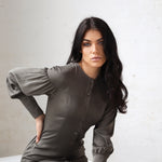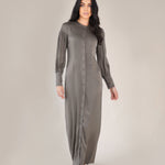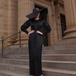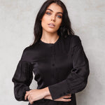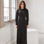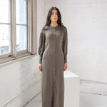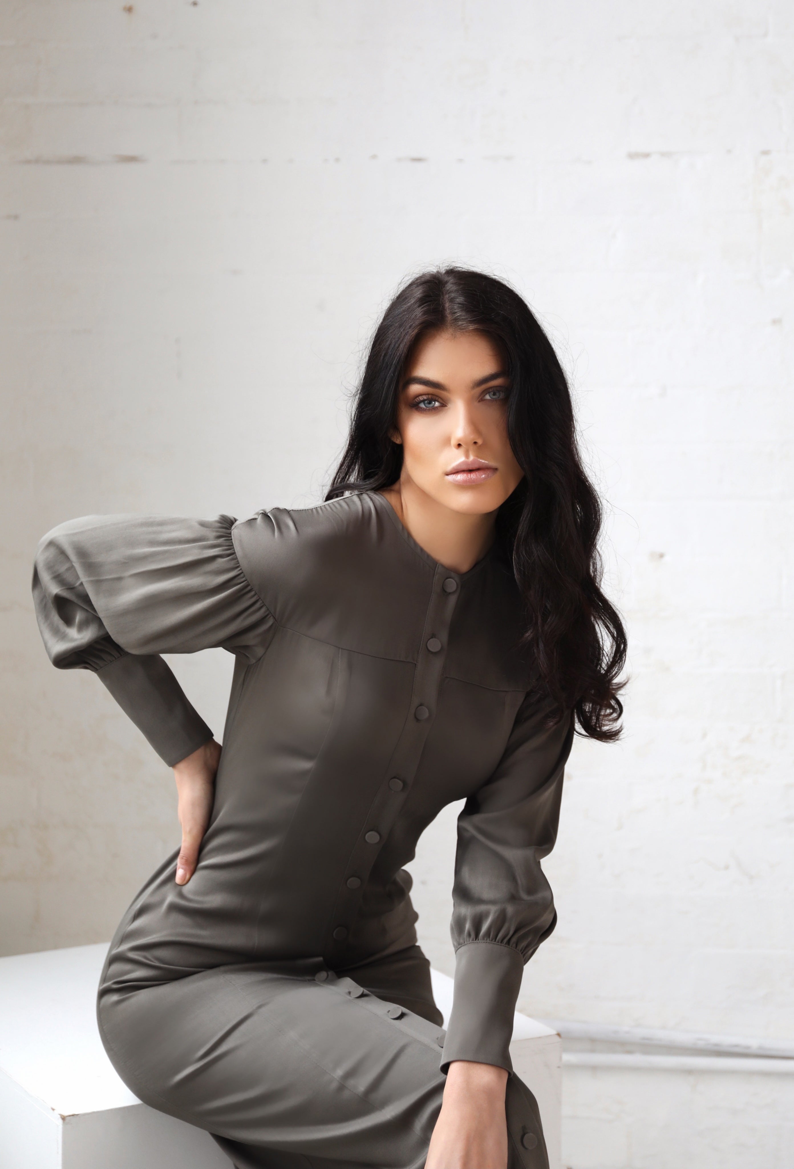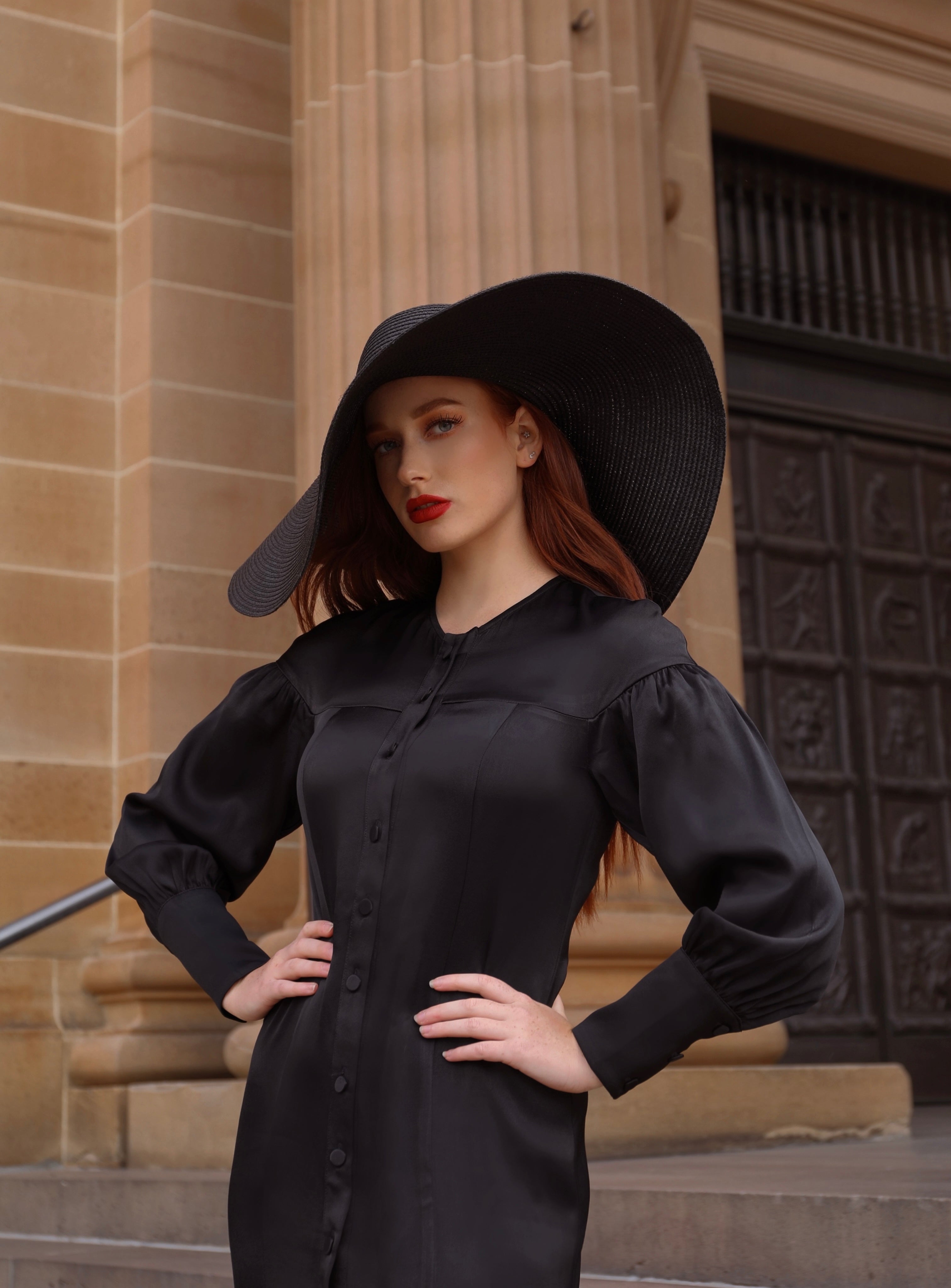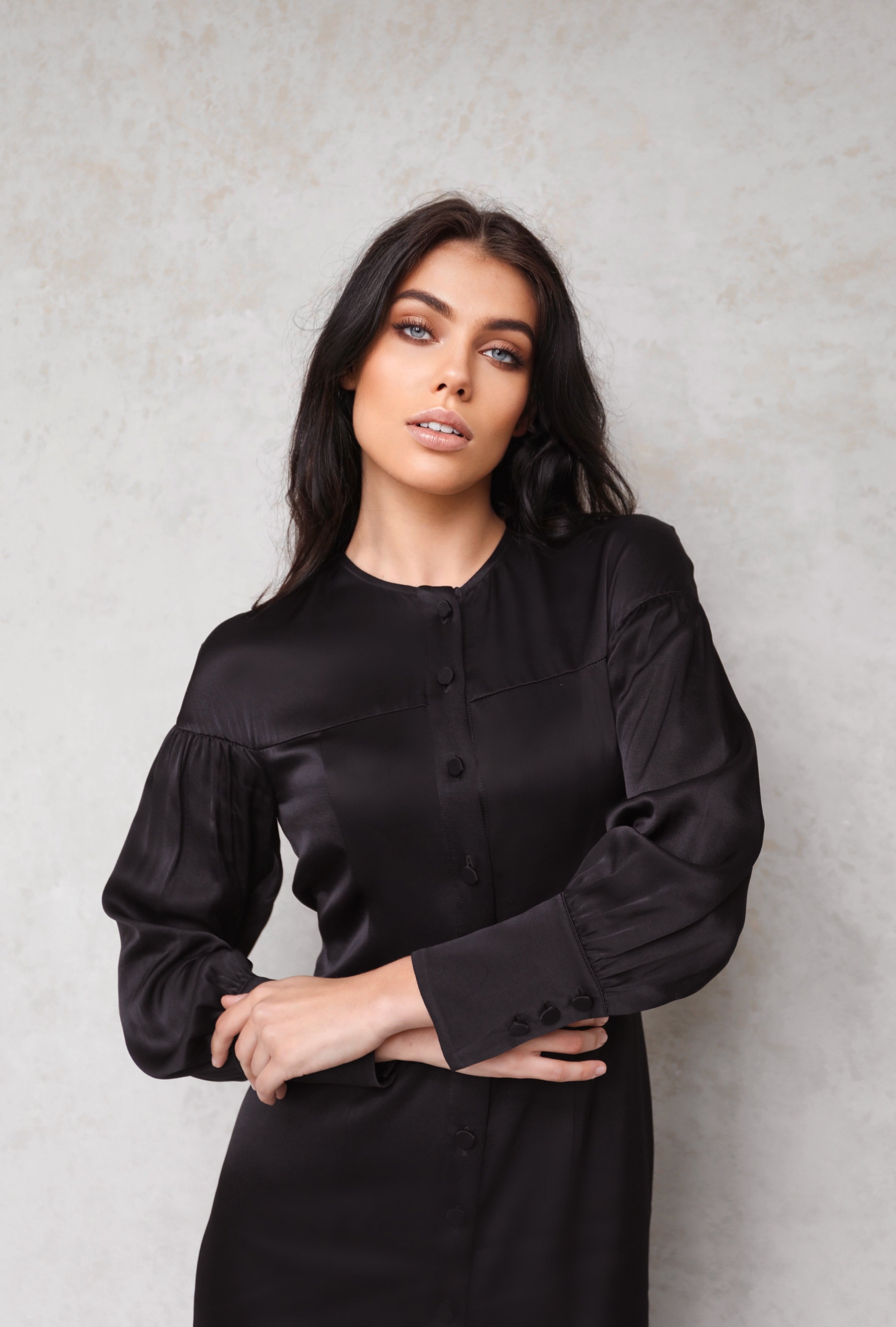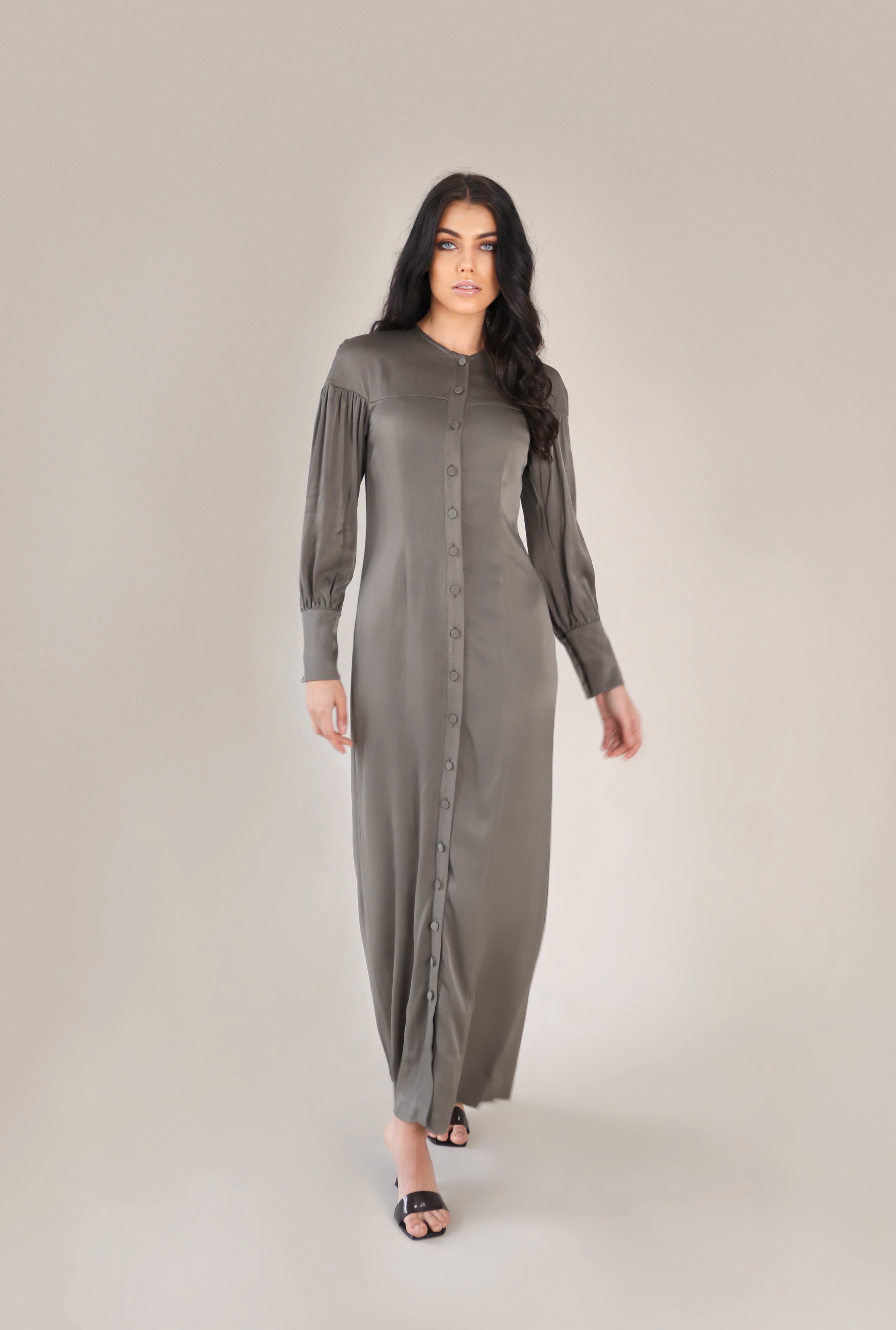 The AMAL dress is one designed to be completely versatile. It can be worn both opened and closed. The dress features 17 buttons on the placket, and 3 buttons on each cuff, each hand sewn. The dress is also panelled for a slimming fit, and also features a kick pleat, making it easier to walk. It's light-weight bamboo silk fabric is breathable and perfect for the warm seasons. The dress has a 6mm double turned hem, and is ankle length.
